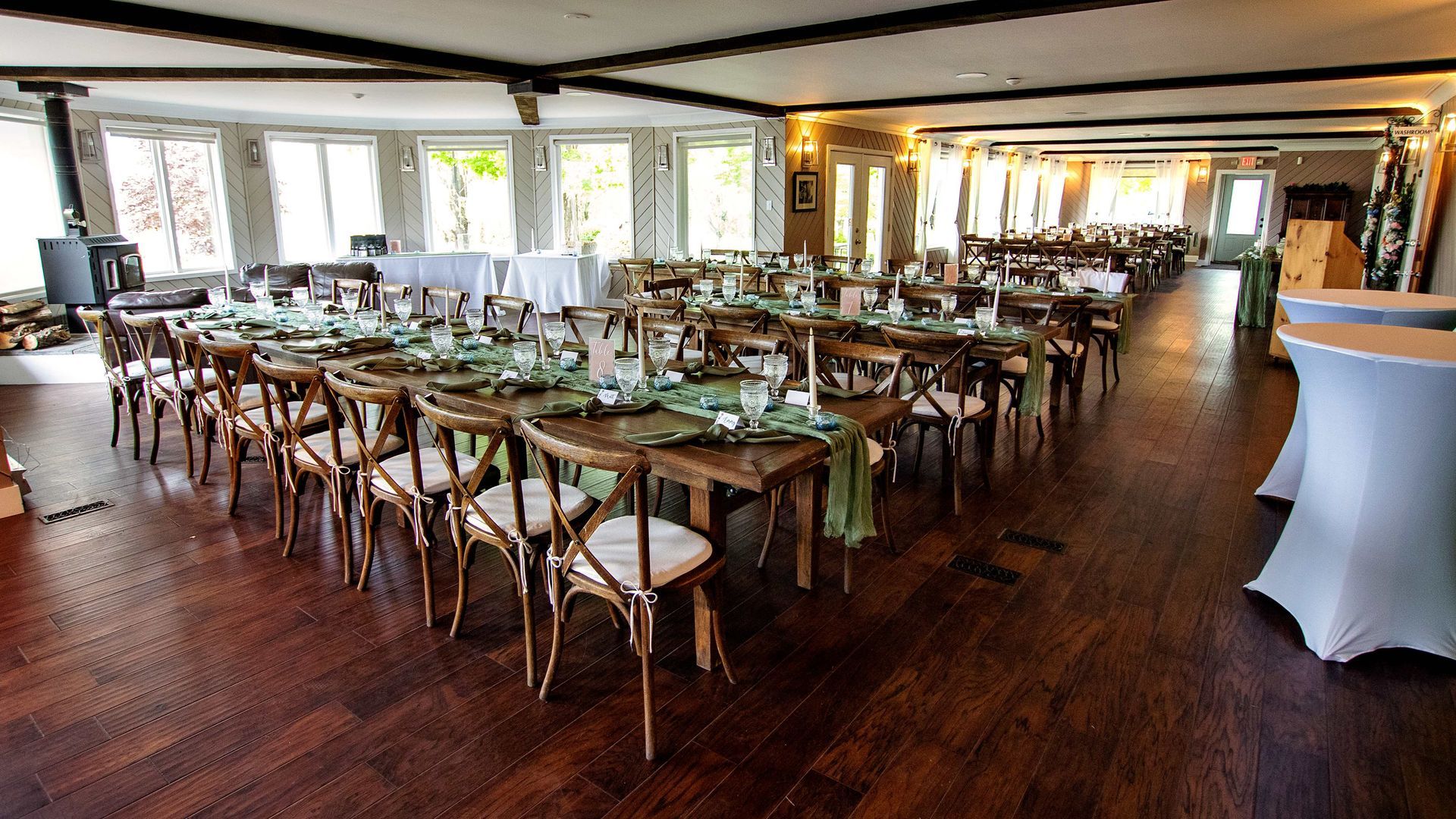 Whether you’re planning a party or reception – or you’re just looking for a casual place for your group to meet and eat – our House has the perfect space. We have a large, window-lined dining room, a cozy bar, and a covered patio. We’re equipped with two big-screen TVs, a pair of dartboards, a jukebox, speakers and a PA system for music and microphones, and an ideal area for a dancefloor and band.
